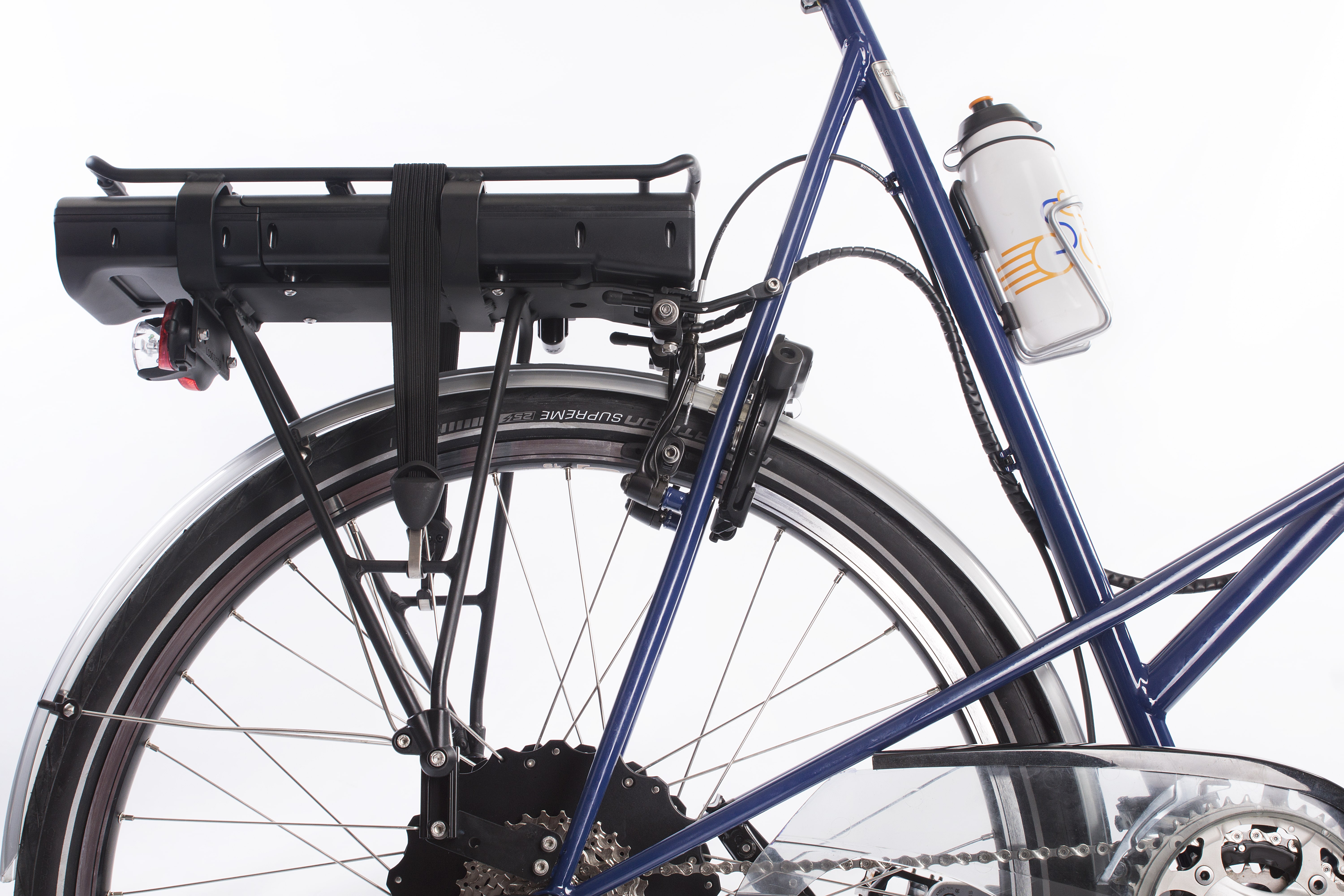 De Cr-Mo framebuizen zijn iets oversized, hierdoor ontstaat er een perfecte balans is tussen stabiliteit, comfort en gewicht. Dit komt de fiets zeer ten goede, gaan toch meer kilo’s mee onderweg, door de motor en de accu.